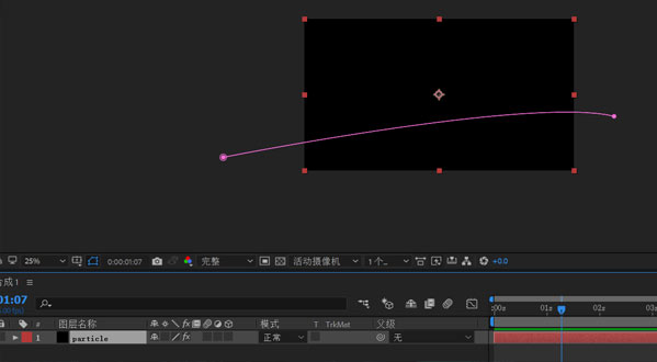 2-01创建纯色,修改名字为particle,用钢笔绘制路径,在纯色层上得到一个蒙版1